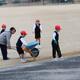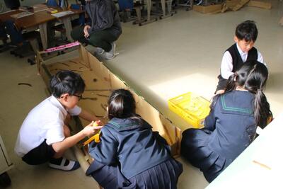 子どもたちはビニール袋いっぱいに菜花を収穫し、うれしそうに学校に帰ってきました。