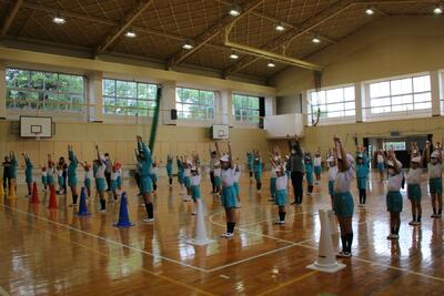 ラジオ体操の練習もしましたが、みんな指先までピンと伸びかっこいい体操になっていました。