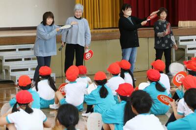今日は朝から榎井婦人会の方々が来てくださり、金毘羅舟々を教えてくれました。