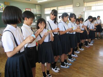 そこで、5年生が6年生の旅の安全を祈願して、お守りを作ってくれました。
