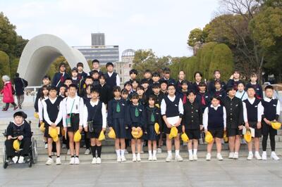 いつもより少し早く6年生は登校し、広島平和学習に行きました。