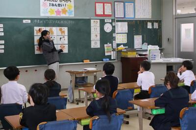 楽しい外国語活動! 投稿: 榎井小管理者 (03/18) 1年間ALTとして楽しい外国語活動をしてくださったリカ先生 今日が榎井小学校では最後の授業となりました。 明るく元気なリカ先生の外国語活動は どの学年も楽しみにしていました。 各担任の先生ともきちんと打ち合わせをして 実態にあった活動をしてくれました。 ありがとうございました。